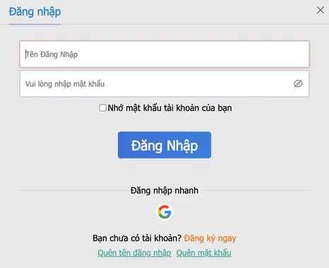 Nhập tên đăng nhập và mật khẩu.